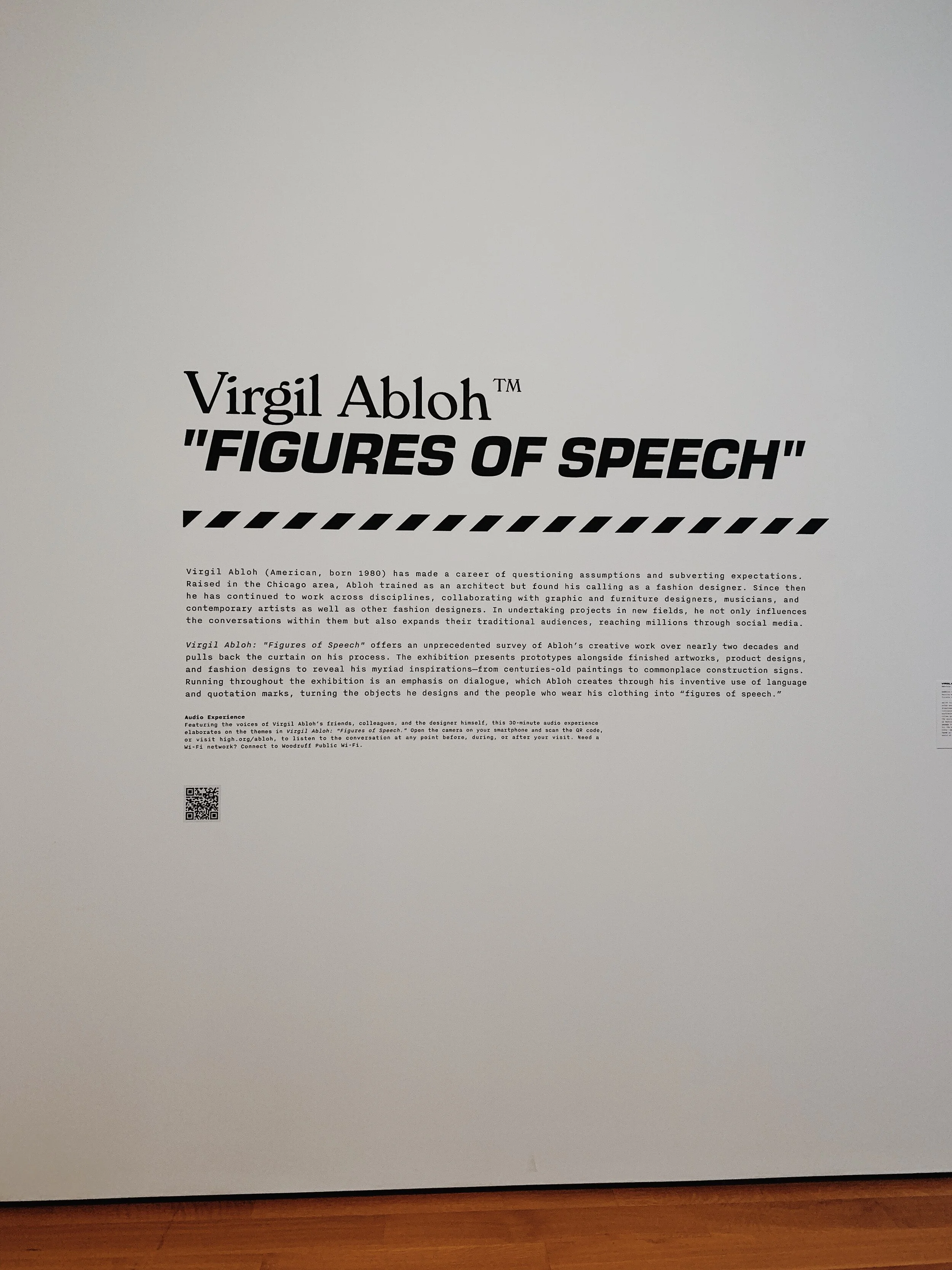 The High’s current special exhibit, “Figures of Speech,” displays the work of artist and designer Virgil Abloh. From working with Kanye West in his early fashion ventures to now leading Louis Vuitton’s menswear as the Creative Director. Familiar with the luxury clothing brand called Off-White? That’s his clothing brand too. Abloh wears many hats and throughout the exhibit visitors will get a deeper look inside his journey as an artist over the last twenty years.